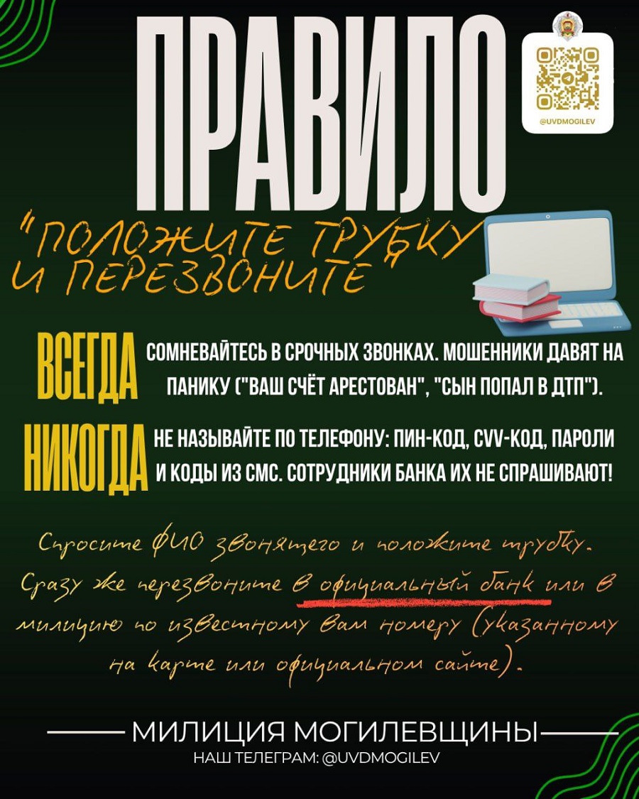 В настоящее время киберпреступность представляет серьезную угрозу для развития экономики и общества. Мошенники постоянно совершенствуют схемы обмана, чтобы заполучить ваши деньги. Для связи кроме интернет-звонков в мессенджерах, таких как Viber, Telegram или WhatsApp, могут использовать стационарную телефонную и мобильную связь, а также интернет-видеосвязь. Чаще всего они представляются сотрудниками правоохранительных органов, работниками операторов сотовой связи, государственных или банковских организаций, реже — вашим родственником или руководителем, брокером или трейдером криптобиржи.